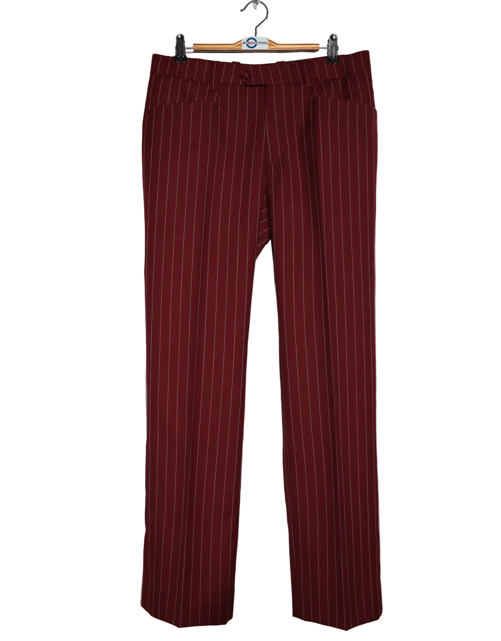 Men's Burgundy and Light Grey Stripe 3 Piece Suit
